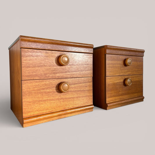 Pair of 1960s Consort Teak Bedside Tables – Mid Century Two Drawer Cabinets