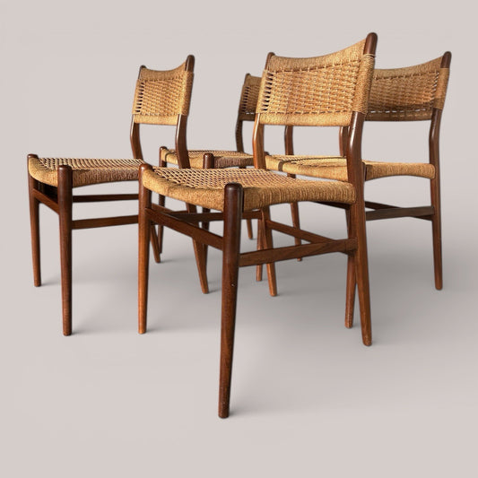 Set of 4 Danish Teak & Cord Dining Chairs