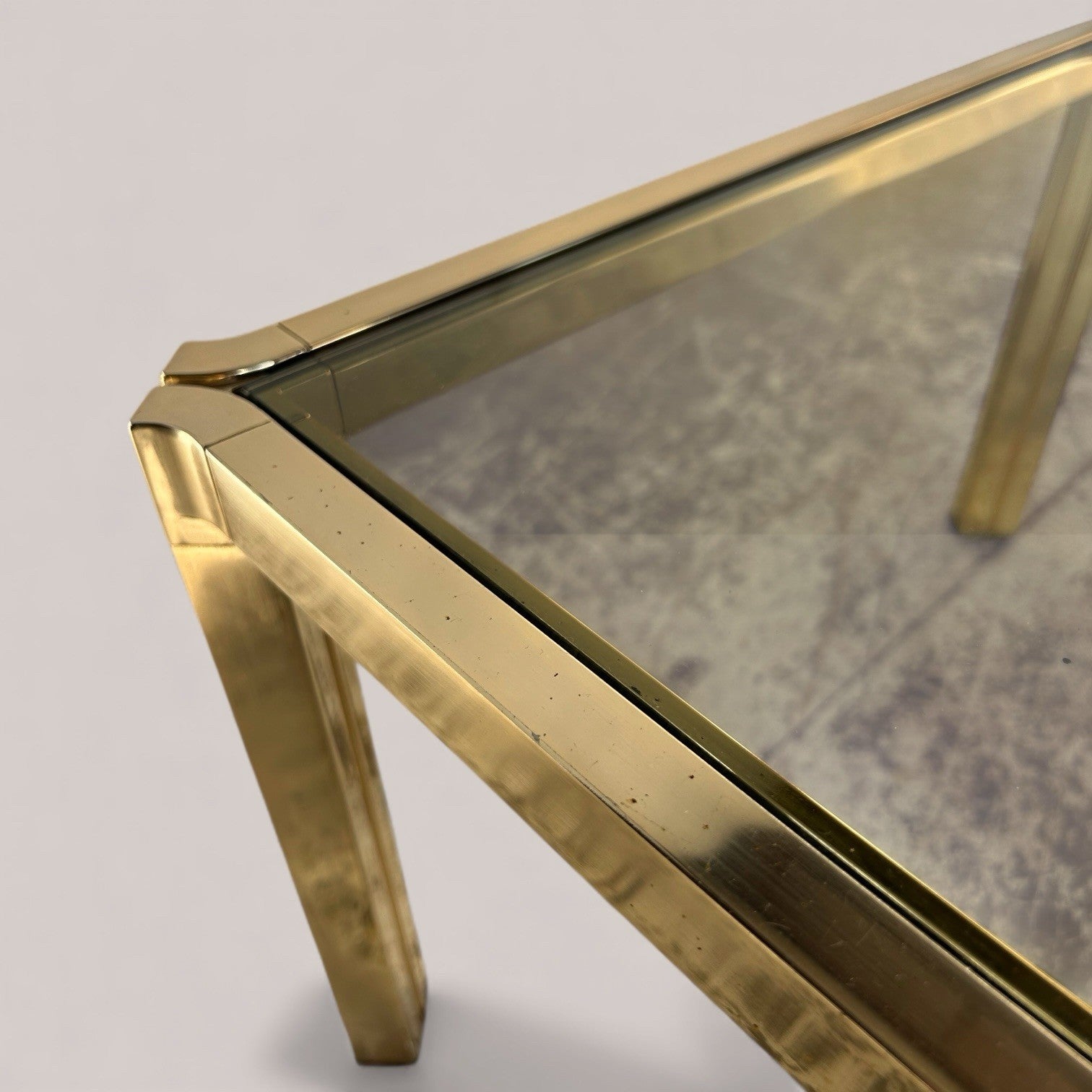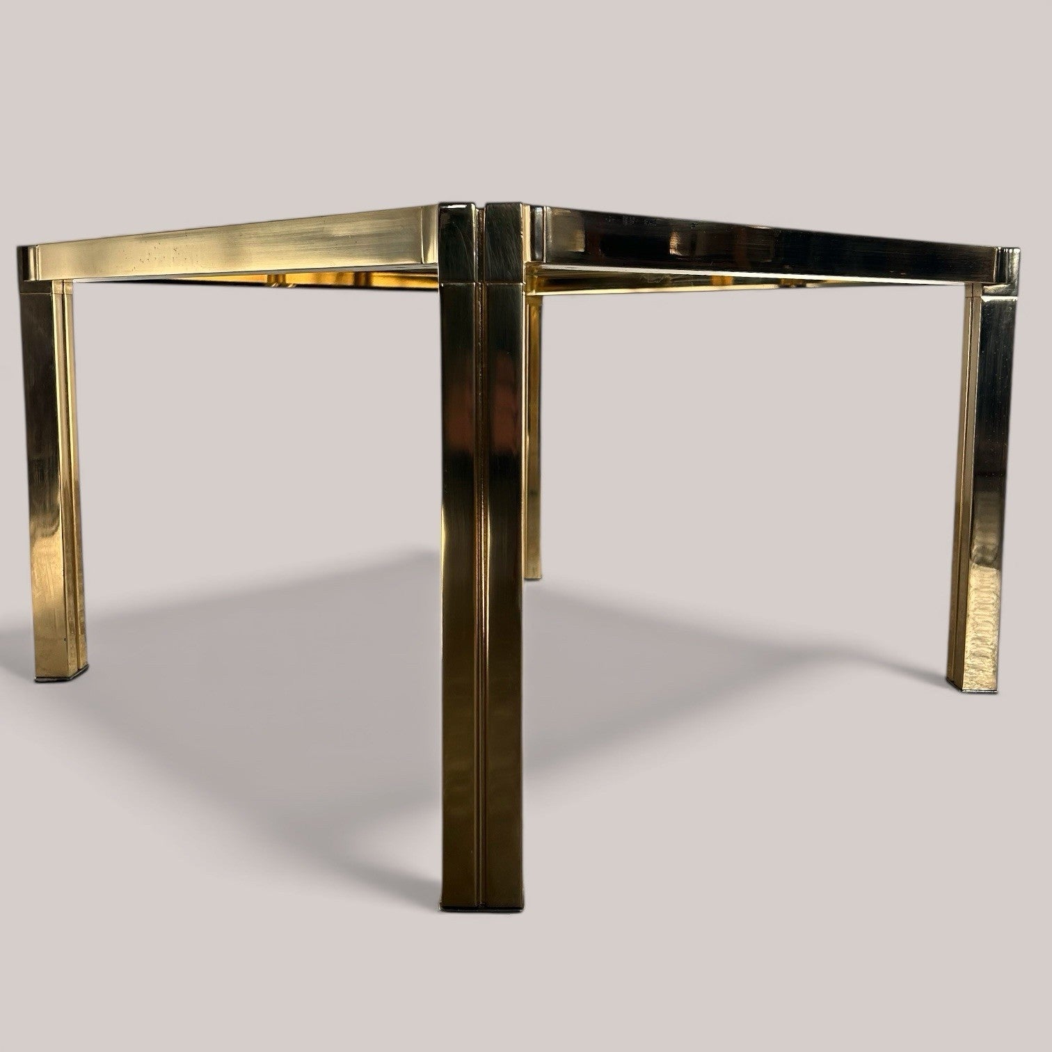 This classic brass-and-glass style was a staple of 1970s Regency revival design, bringing light, reflection and warmth into living spaces. The square format suits modern homes where clean lines matter, while the gold finish softens it with a bit of luxury. Ideal for lounges, studio flats or anywhere that needs a standout feature piece. Light age and patina consistent with vintage brass.