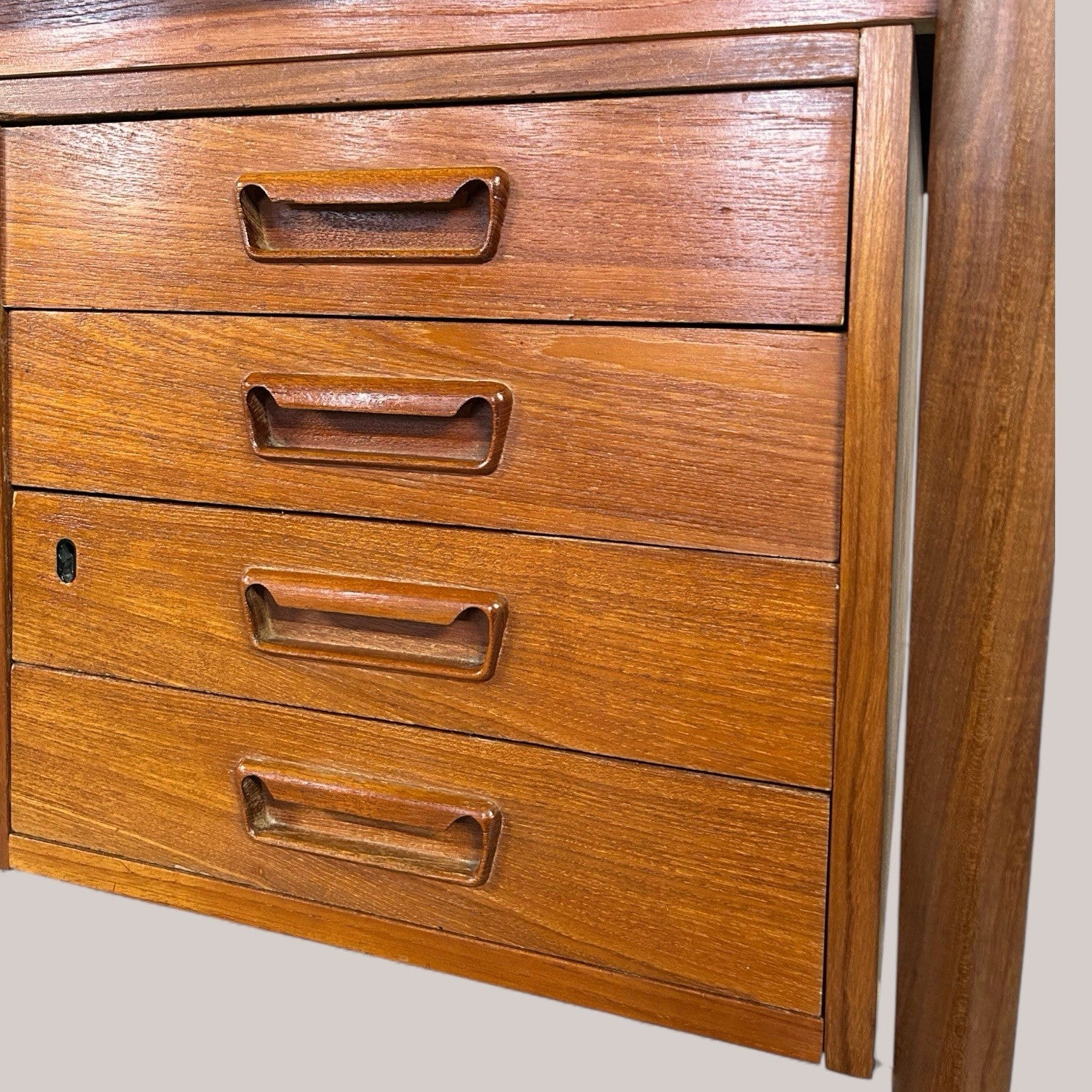 danish desk, teak desk, 60s design, mid century, scandi design, teak furniture, vintage desk, home office, teak workspace, retro desk, scandinavian desk, teak drawers, executive desk