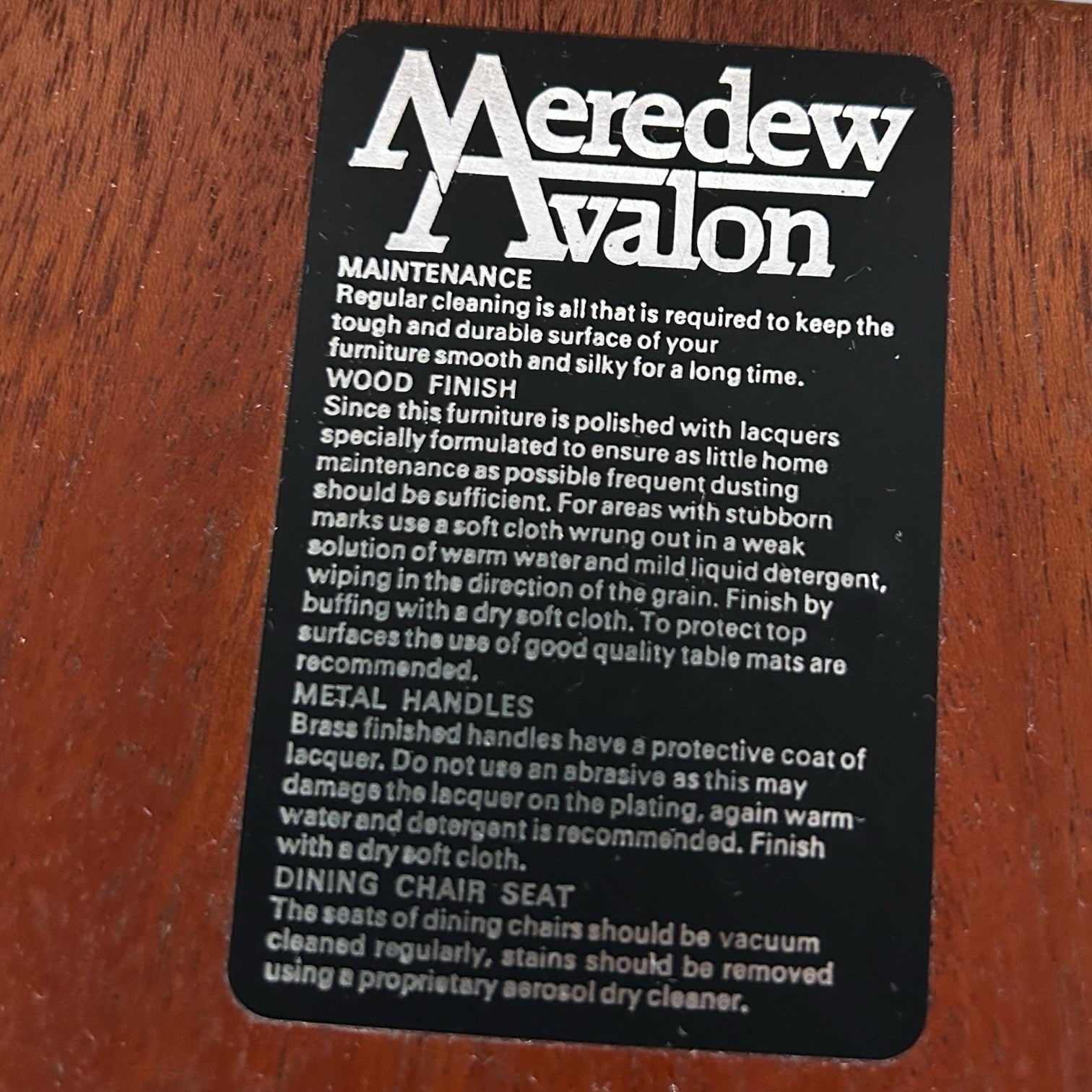 The top has a lovely contrast between the central panels and the surrounding frame, a detail Avalon pieces are known for. Butterfly extension mechanism runs smoothly and the table is solid and stable. There are light signs of age as you’d expect from a piece of this era, but overall it presents very well and has clearly been cared for.