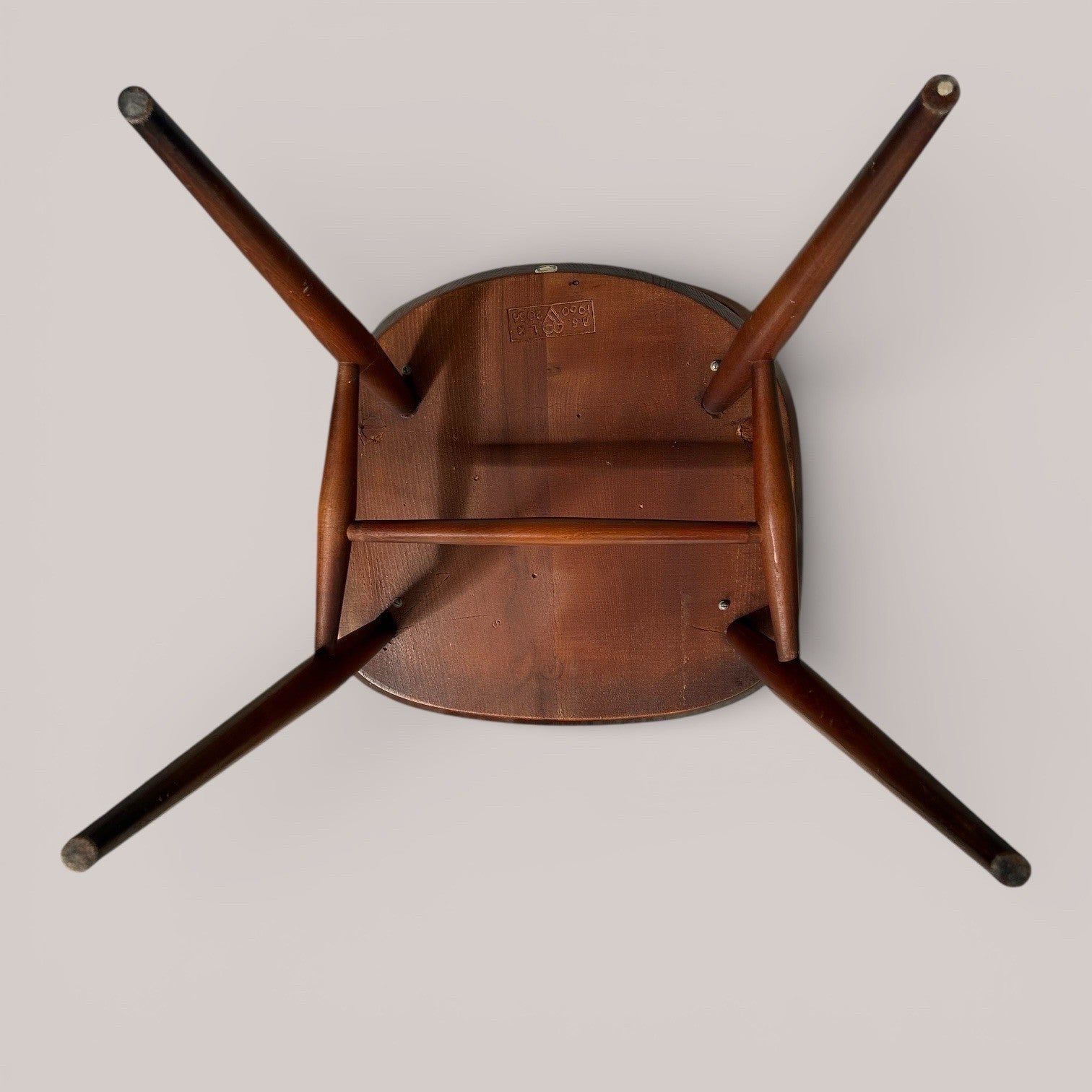 This example retains its original blue 1960s Ercol label and shows honest signs of wear, including surface marks and patina to the legs and seat, consistent with age and use. The chair remains solid, stable, and structurally sound.