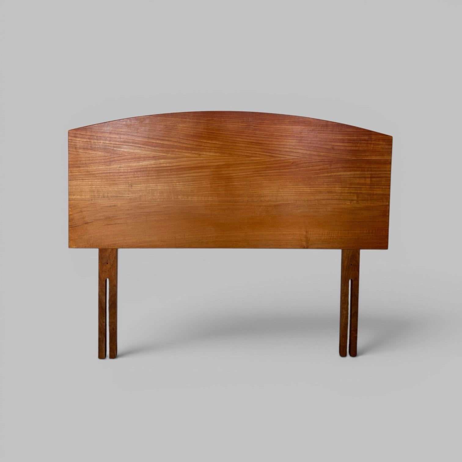A solid teak mid century double headboard with a gently arched top and simple upright supports. Clean lines, good colour and a proper bit of weight to it – Solid, not veneer.