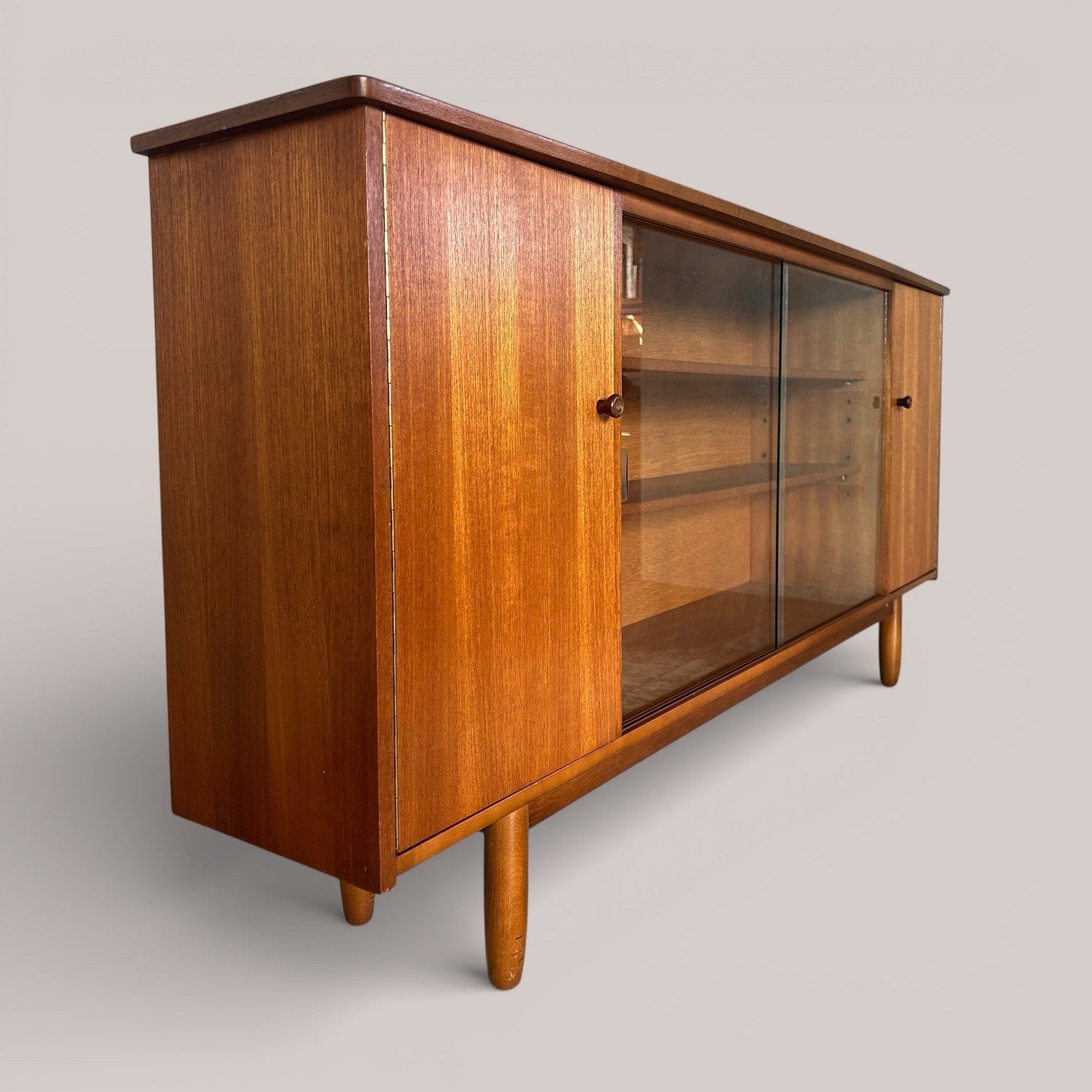 Mid Century Teak Sideboard with Sliding Glass Doors – Display Cabinet
