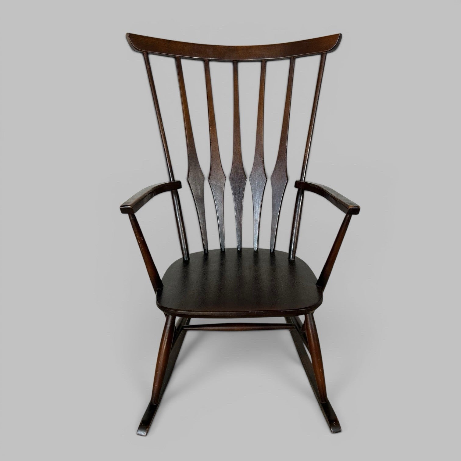 mid century chair, rocking chair, wooden rocker, vintage rocker, spindle chair, retro chair, lounge chair, armchair wood, danish style, reading chair, vintage seating, nursery chair, wood rocking chair