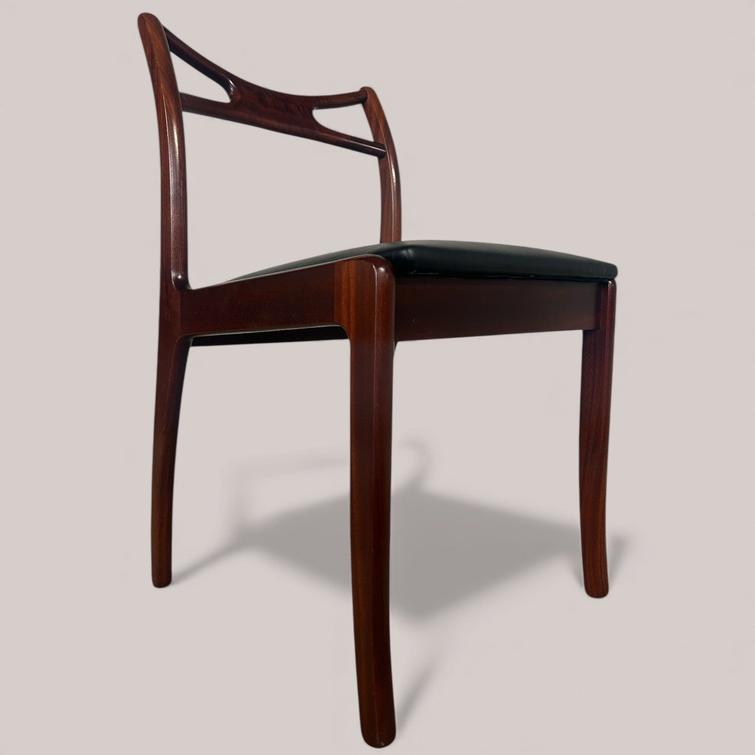 danish chairs, rosewood chairs, dining chairs, scandi chairs, mcm seating, vintage chairs, retro dining, uk vintage, sculpted back, vinyl seat, teak style, midcentury, 1960s chairs